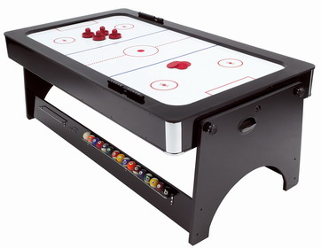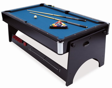 7 ft Scorpio 2-in-1Pool/Air Hockey Reversible Multigames Table Stylish and practical full size professional pool/air hockey table. Pool on the one side and air hockey on the reverse. With ingenious flip over design for quick and easy table change. Black exterior with chrome effect corners and accessories storage racks, top grade blue cloth, high response rubber cushions and powerful electric motor for fast and smooth air hockey puck action. Accessories include 6 pucks, 4 strikers, 2 full size cues, 2 1/4 set of spots and stripes, balls, triangle, chalk and brush, accomodates 2-4 players on air hockey. Dimensions Assembled: L203 x W114 x H79cm